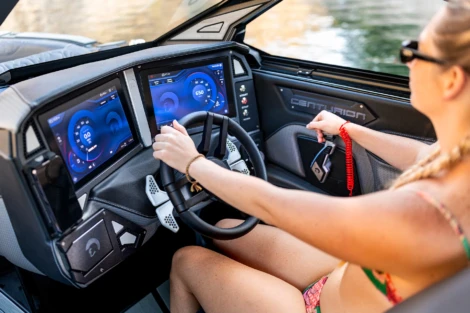 Centurion is at the forefront of wake boat technology. Features like the QuickSurf Pro System, customizable wave settings, and intuitive PANO Side by Side HD Touch Vision screens make the boat incredibly easy to operate. This technology allows for quick adjustments and a seamless on-water experience.