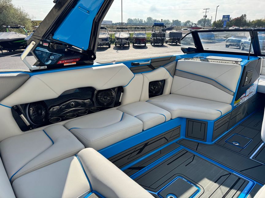 It boasts a spacious and comfortable interior with generous storage space, giving you a built-in locker for keeping your ski and wakeboarding gear. The refined finishes and tech-rich amenities, including custom audio system, LED lights, and advanced navigation systems, take luxury and convenience to a new level.