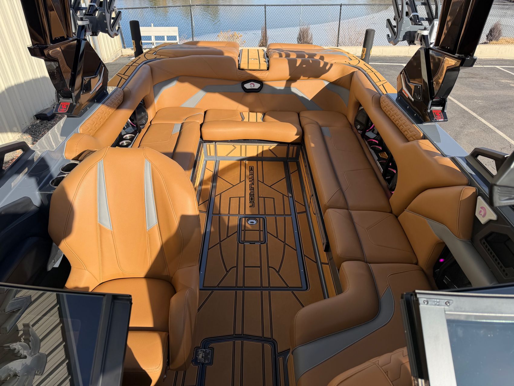 More than the comfort and performance, the 2026 Centurion RI245 stands out in terms of innovation. Its opti-v hull design reduces drag, improves fuel efficiency, and generates incredible surf waves. The boat is also equipped with a quick surf system, allowing users to switch surf sides in less than three seconds.