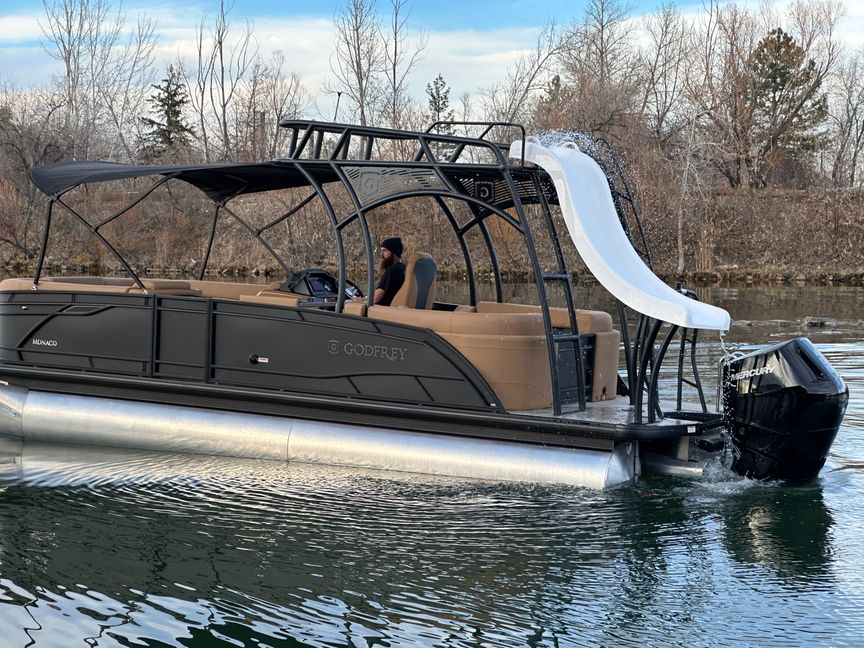 With a passion for excellence, Godfrey presents the 2026 Monaco 255 SDB, their biggest stride in pontoon innovation yet. This boat exemplifies class, sophistication, and style while offering an array of advanced features that enhance every moment spent on the water.