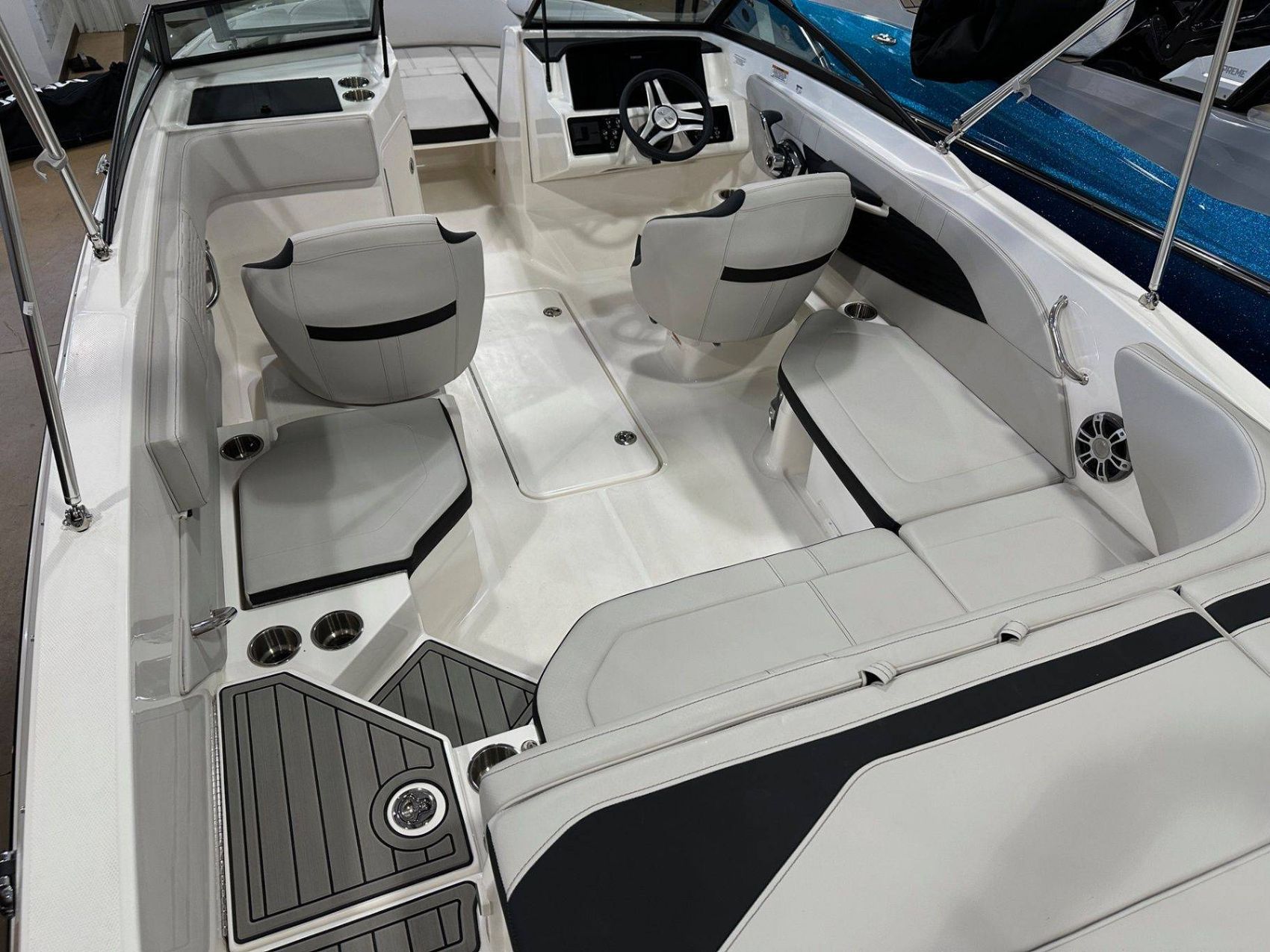 The Sea Ray 210 SPX’s indoor area is equally impressive with a cabin perfect for short getaways. Complete with a cozy V-berth for lounging or overnight trips and a convenient head compartment, the interior of this boat offers a haven of comfort.