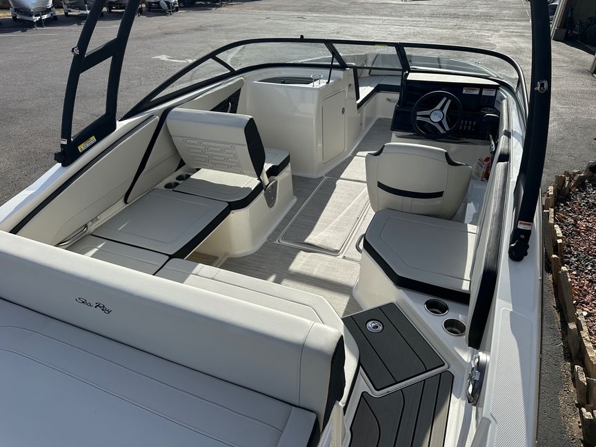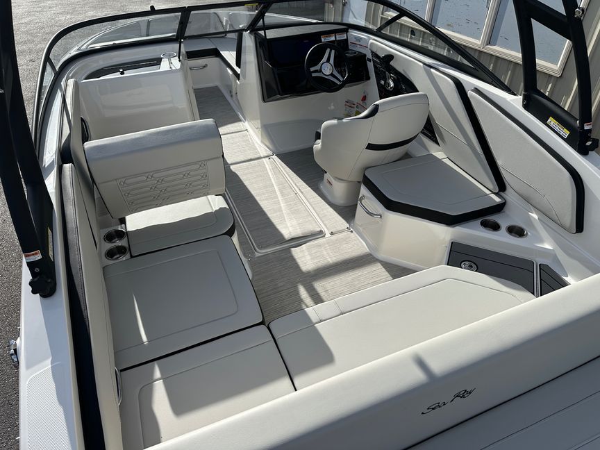 Aesthetically, the 2025 Sea Ray SPX 210 is a work of art. The sleek, contemporary exterior design is complimented by its exquisite interior. The wraparound seating is spacious and comfortable with an ability to accommodate up to 13 passengers. Enjoy the generous storage space for all your water sports equipment or personal belongings - everything has a place on this boat!