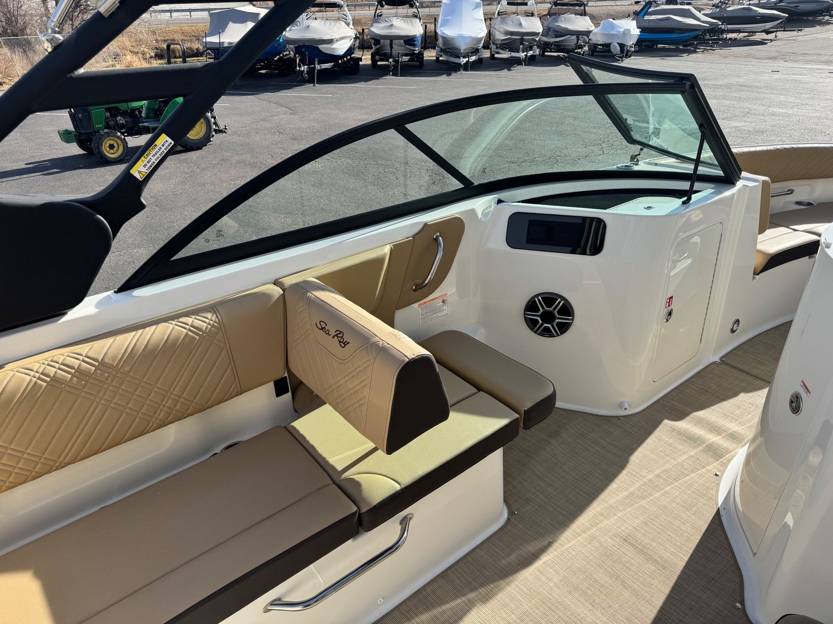 The 2026 Sea Ray SDX 230 is powered by a potent MerCruiser engine, offering unmatched speed and performance. The boat’s design includes a stable, deep V hull, ensuring a smooth and comfortable ride, no matter the conditions.