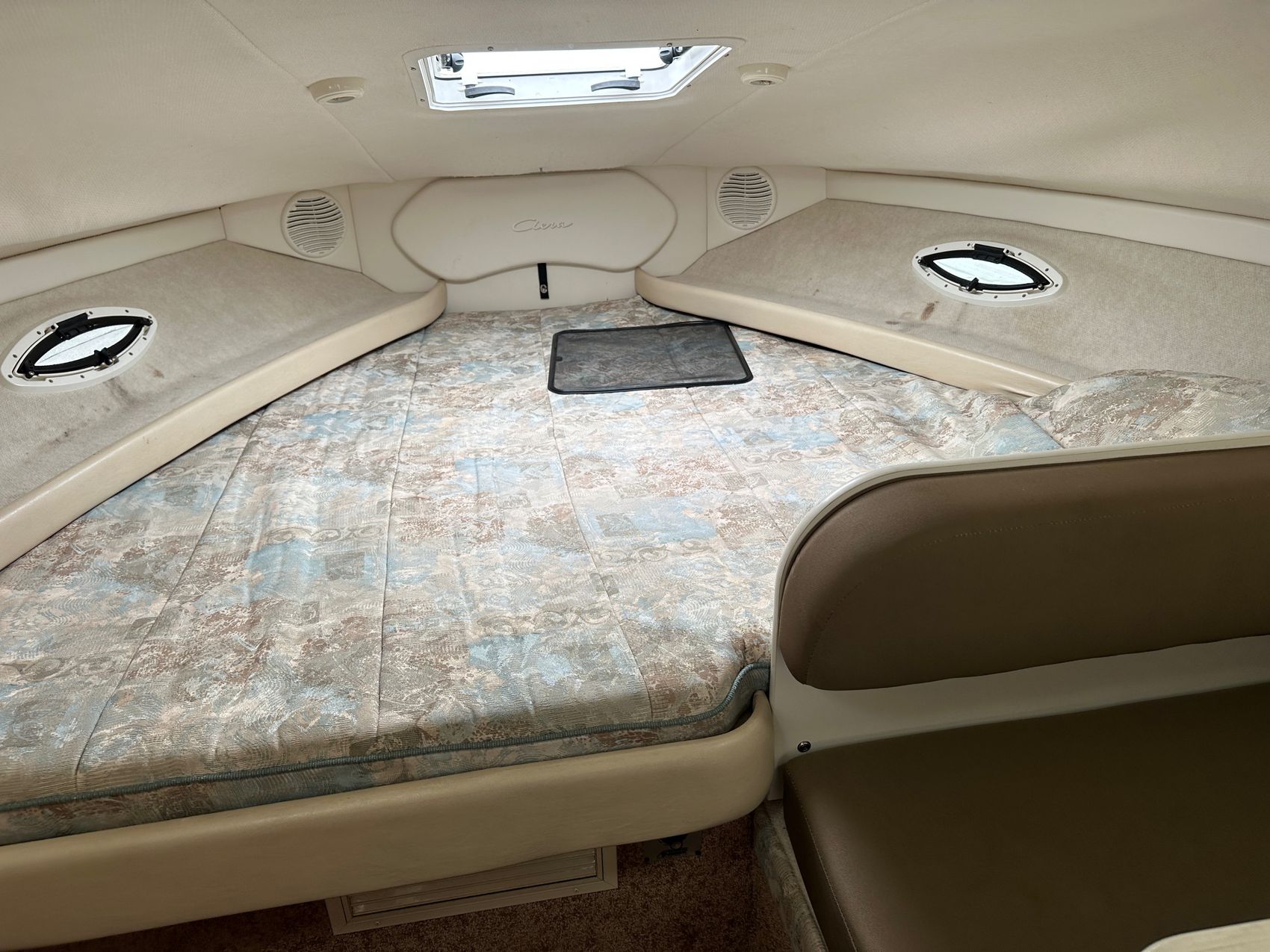 Performance and Dimensions: Powered by a 7.4L Mercruiser engine, this model delivers an optimized boating experience. It has a fuel capacity of 109 gallons and can comfortably accommodate up to six persons. With a length overall of over 28 feet, a beam of 9 feet and 10 inches, it offers generous space onboard.