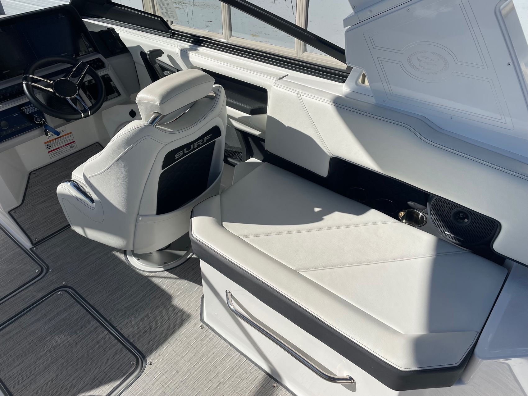 Step inside the 2025 Cobalt R6 Surf to be greeted by a world of luxury. With high-quality materials and comfort in every detail, this boat boasts plush seating for a truly comfortable and luxurious on-board experience. Enjoy your time on the water in the best way possible.