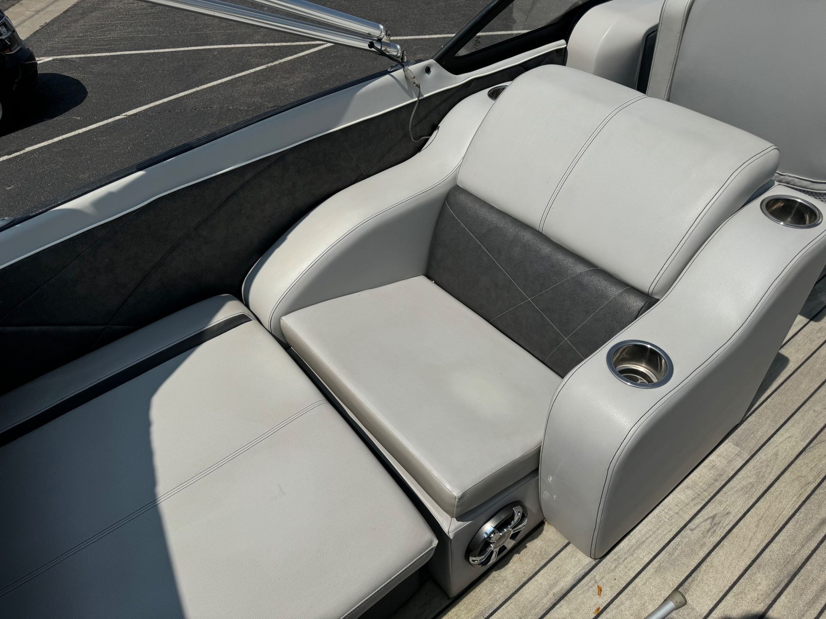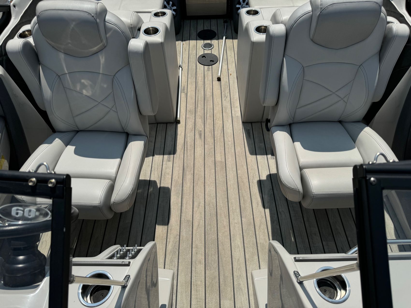 Powered by a top-of-the-line Mercury 250 Verado outboard engine, this Pontoon boat offers unparalleled speed and stability on the water. The engine's refined power, super quiet operation, and low fuel consumption ensure a smooth and enjoyable boating experience.