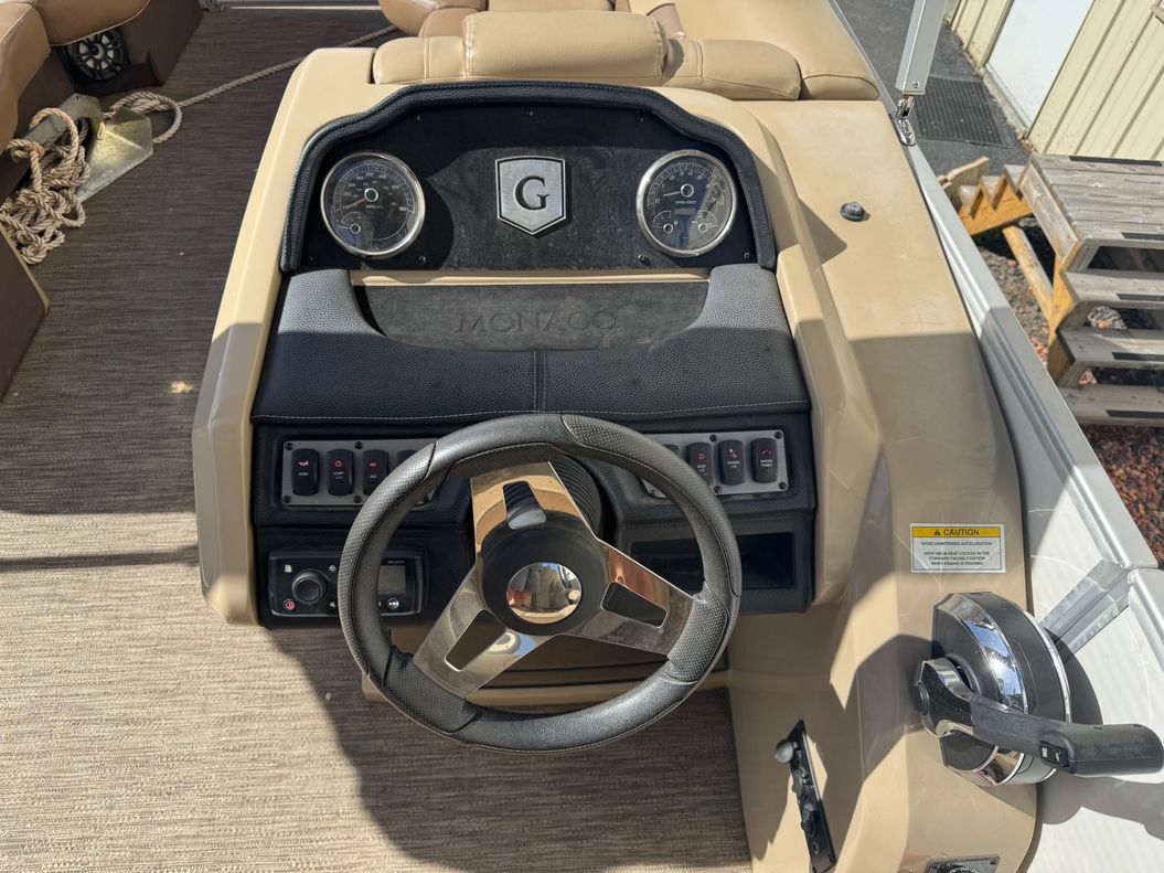 Each 2021 Monaco 255 SD by Godfrey comes equipped with a wide range of amenities to enhance your boating experience. Standard features include a comfortable sun lounge, a fully functional kitchenette, a dining area, and a spacious swim platform. Plus, the boat offers ample storage for your gear and refreshments.