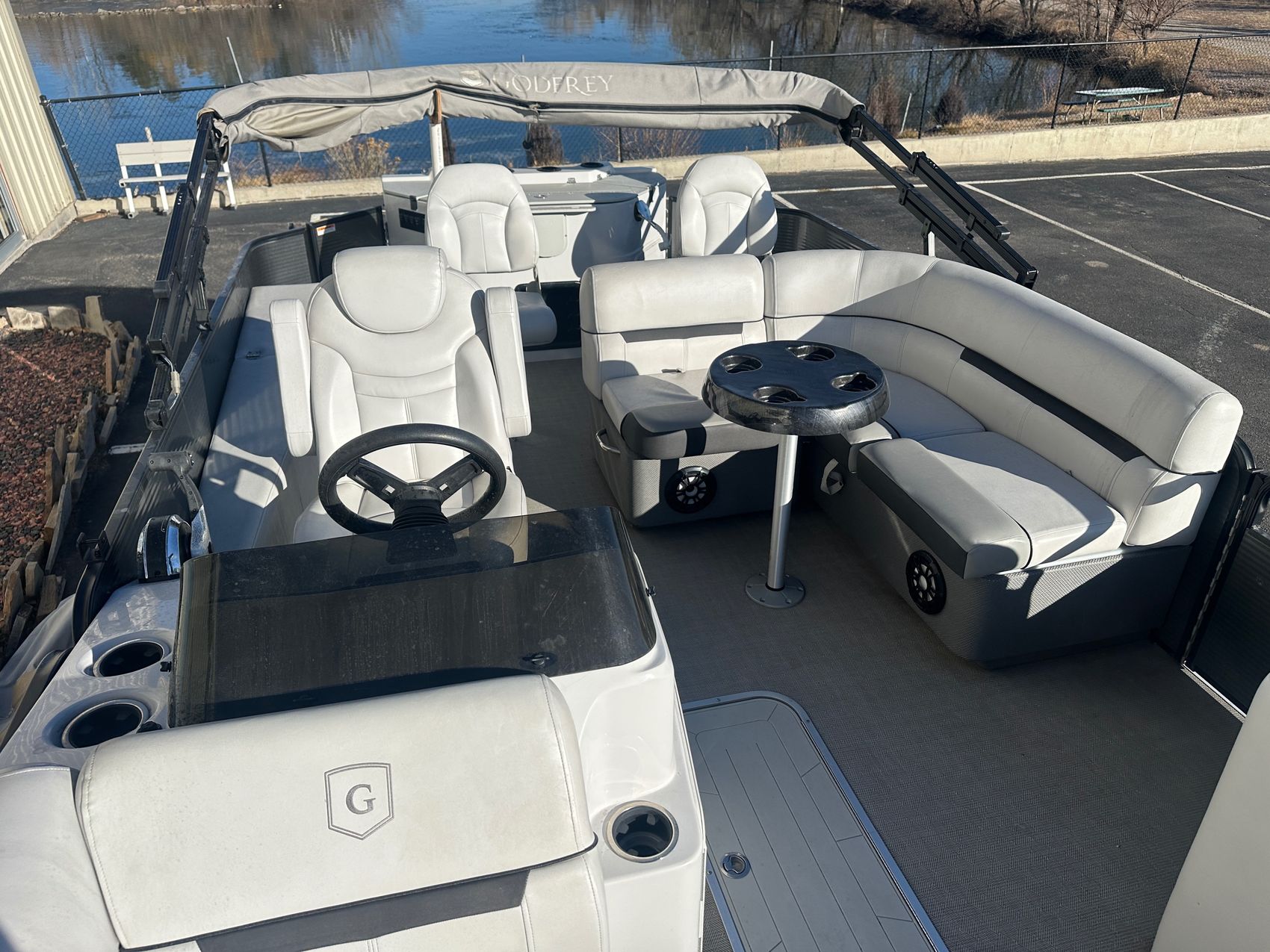 Featuring a striking, streamlined design, the 2021 Godfrey Sweetwater 2286 FS is the epitome of style and functionality. Its innovative hull design ensures a smooth and swift journey across any body of water. Complete with a choice of modern or classic color schemes, each boat offers a personal touch, making every trip truly unique.