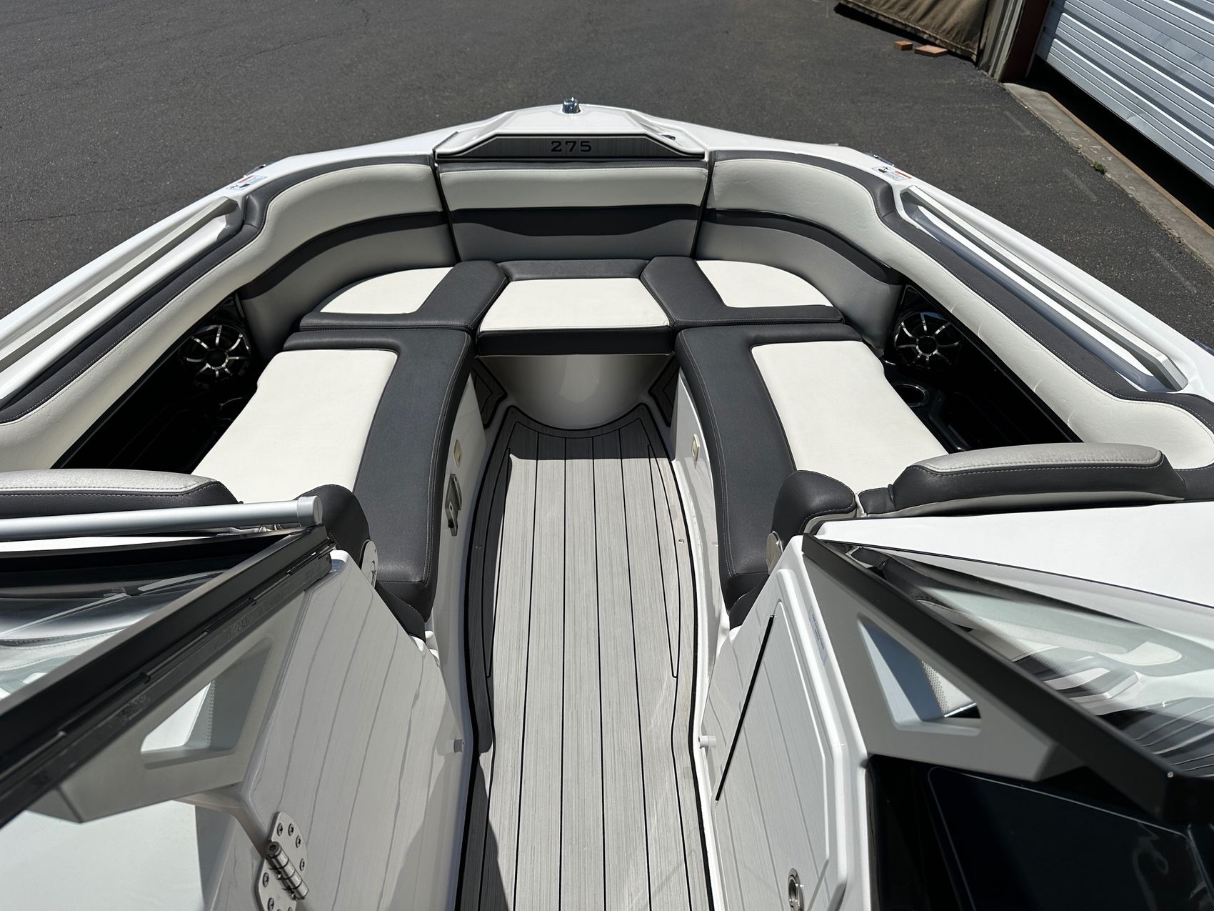 It combines the power of sportiness with the beauty of sophistication in its design. With a spacious deck layout, it has comfortable seating for up to 12 passengers ensuring everyone feels part of the action. Featuring customizable seating configurations, a removable table for onboard dining, and plenty of storage space, it offers unparalleled convenience.